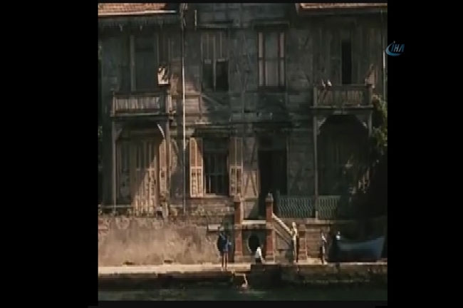 kenarındaki yalıların gösterildiği sırada evlerinin önünde denizde yüzen