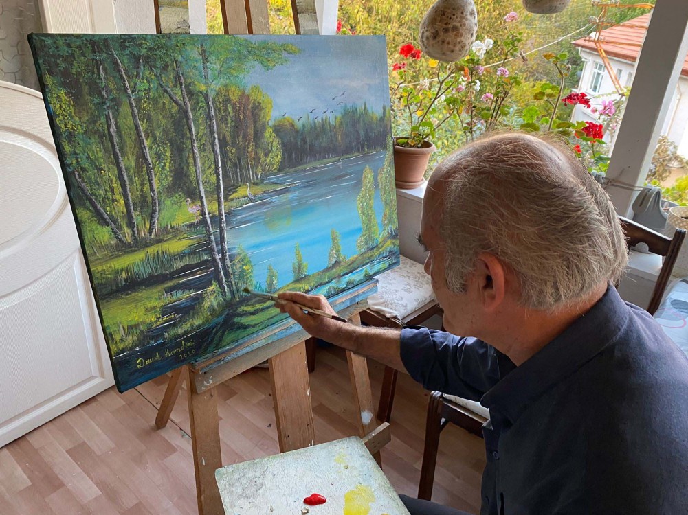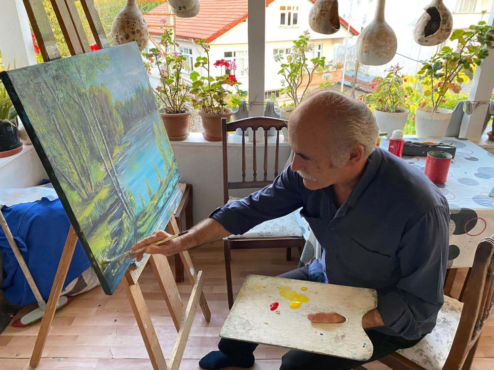 Zonguldak'ın Gökçebey ilçesinde yaşayan 69 yaşındaki Davut Karademir, 50 yıl önce çikolata kutusuna yaptığı resimle başladığı ressamlıkta 100'e yakın eser üretti.