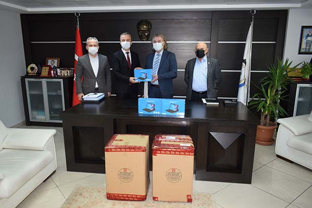 Uzaktan eğitime erişim sağlayamayan ihtiyaç sahibi öğrencilere destek olmak amacıyla Çaycuma TSO işbirliğinde temin edilen tabletleri Yönetim Kurulu Başkanı Zekai Kamitoğlu ve Meclis Başkanı Ergün Ece, İlçe Milli Eğitim Müdürü İsmail Baş’a teslim etti.