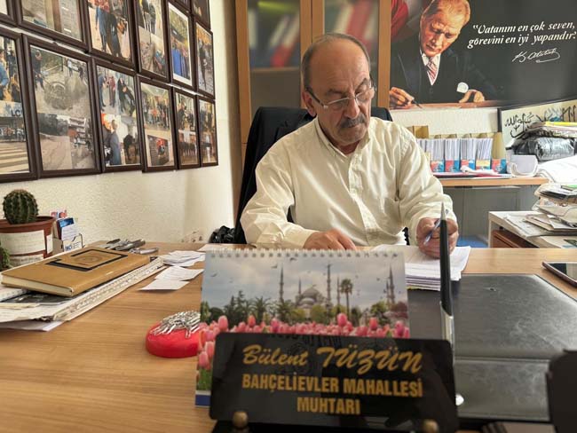 Zonguldak’ın Bahçelievler Mahallesi’nde yaşayan 66 yaşındaki Bülent Tüzün; 28 yıl muhtarlık görevi sürdükten sonra görevi bırakan babası Selahattin Tüzün’den sonra 30 yıldır muhtarlık görevini sürdürüyor.