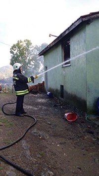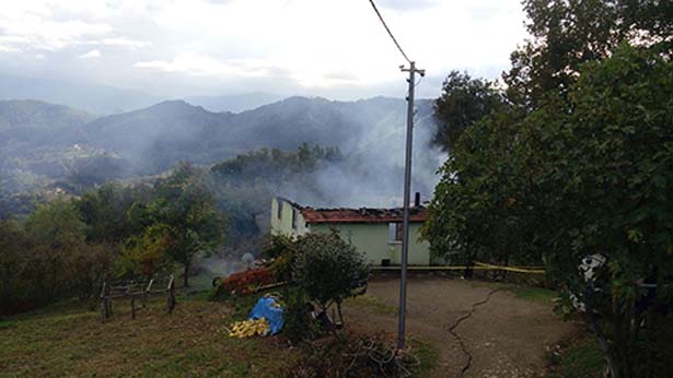 Zonguldak'ın Ereğli ilçesine bağlı Akköy köyünde çıkan yangında ahşap bina kül oldu. 6 kişilik aile evsiz kaldı.