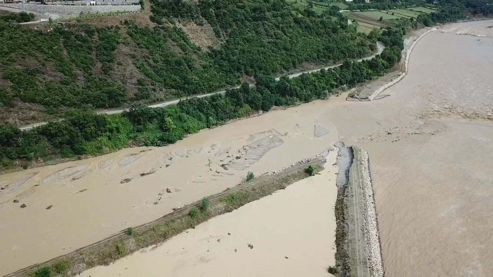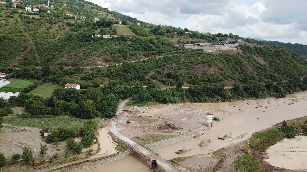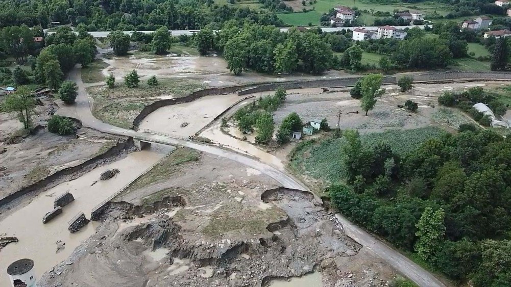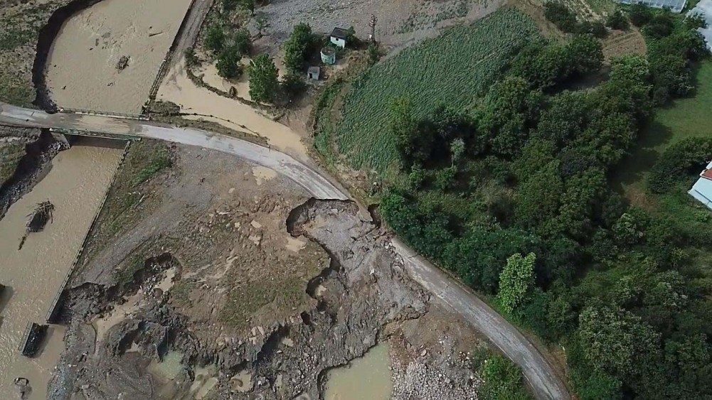Zonguldak'ta etkili olan kuvvetli yağışla dereler yükseldi, rögarlardan su taştı. 6 köyü birbirine bağlayan yol çöktü
