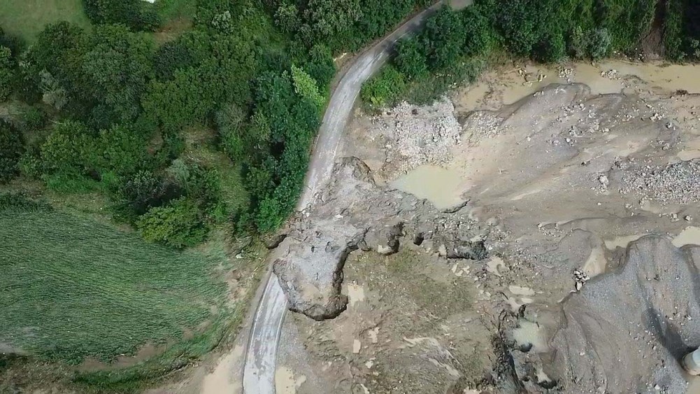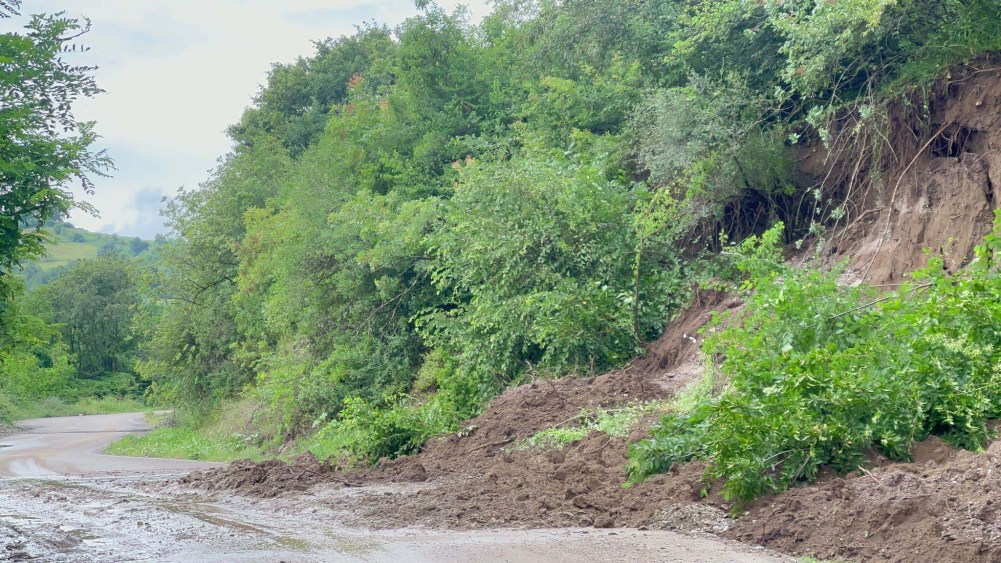 6 köyü ilçeye bağlayan yol çöktü