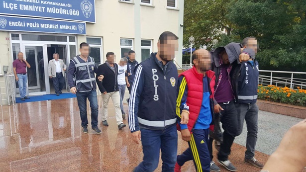 Alınan bilgilere Ereğli'de yapımı devam eden 12 ayrı inşaatlarında meydana gelen kablo hırsızlığı ile ilgili olarak çalışma başlatan Ereğli İlçe Emniyet Müdürlüğü Asayiş büro amirliği ekipleri, hırsızlık olayını gerçekleştirdikleri iddiası ile E. K. (42) Y. D. (32) E. V. (38) Y. Y. (45) F. K. (29) ve D. D. 'yi (34) göz altına aldı. Zanlıların evlerinde ve araçlarında yapılan aramalarda Y. D.'nin evinde kablo demir gibi cisimleri kesmeye yarayan makas bulunarak el konulduğu öğrenildi. Zanlılar Emniyetteki ifadelerinin tamamlanmasının ardından Adliyeye sevk edildi.