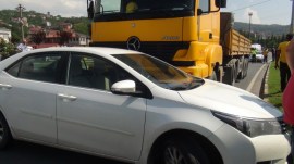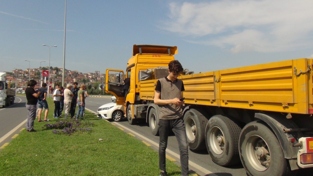 Zonguldak’ın Ereğli ilçesinde tırın altına giren otomobil yaklaşık 60 metre sürükledi. Kazada şans eseri yaralanan olmazken araçlarda maddi hasar oluştu.
