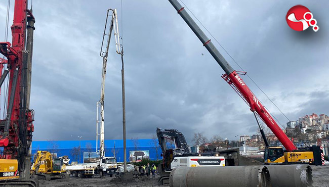 Aralıklısız devam eden çalışmalarda zeminin güçlendirmesi çerçevesinde fore kazıklarının yerleştirildiği öğrenildi.