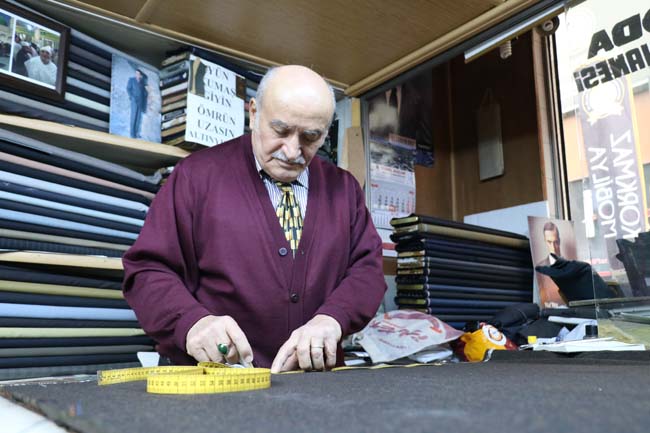 "Bu Gazipaşa Caddesi'nde 50 yıldır 'en şık giyinen adam' unvanını aldım. Ve aynı zamanda 2018 yılının ahisiyim. Ahi demek sanatkar, karakter, insan demek. Beni bu unvana layık gördüler teşekkür ederim. Elim tutuyor, gözüm görüyor. Mesleğimi devam ettiriyorum. 77 yaşındayım. Mesleğin son kuşağıyız. Ama mesleğime doyamadım. Herkes baba mesleğini yapar benim annem terziydi. Anne mesleğini yapıyorum. Bu mesleğimle iki kızım var. Bir yurt dışında biri İstanbul'da. Onları okuttum."