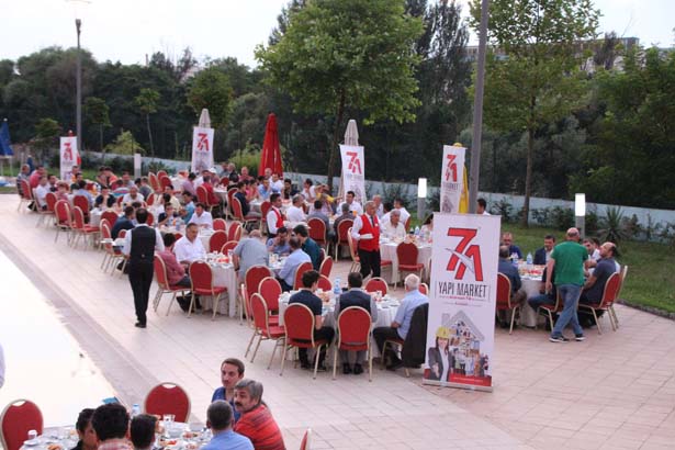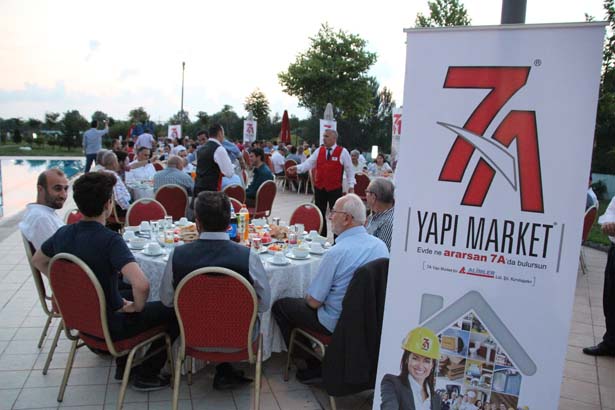 Büyük Anadolu otelde gerçekleştirilen iftar programına ilçedeki ve ilçe dışından bir çok iş adamı ve müteahhitler ile Ticaret ve Sanayi Odası Yönetim Kurulu üyeleri, çalışanları katıldı. Konuklarını karşılayan 7/A Market sahibi Mehmet Alim, 7/A yapı Market olarak katılımcılara hediyelerini armağan etti. Ezanın okunması ile birlikte katılımcılar oruçlarını açarken, gazetecilere açıklamada bulunan 7/A Yapı Market sahibi Mehmet Alim, amaçlarının Ramazan ayında güzel bir akşam geçirmek olduğunu söyledi. Alim konuşmasında "Bu akşam Ereğli' de ki müteahhit arkadaşlarımız iş çevresini toplamaya çalıştık. Dostane bir akşam olsun, Ramazan gecelerinde. Güzel bir akşam olsun diye. Ereğli'nin önde gelen iş adamları, arkadaşlarımızla beraber olacağız" dedi.