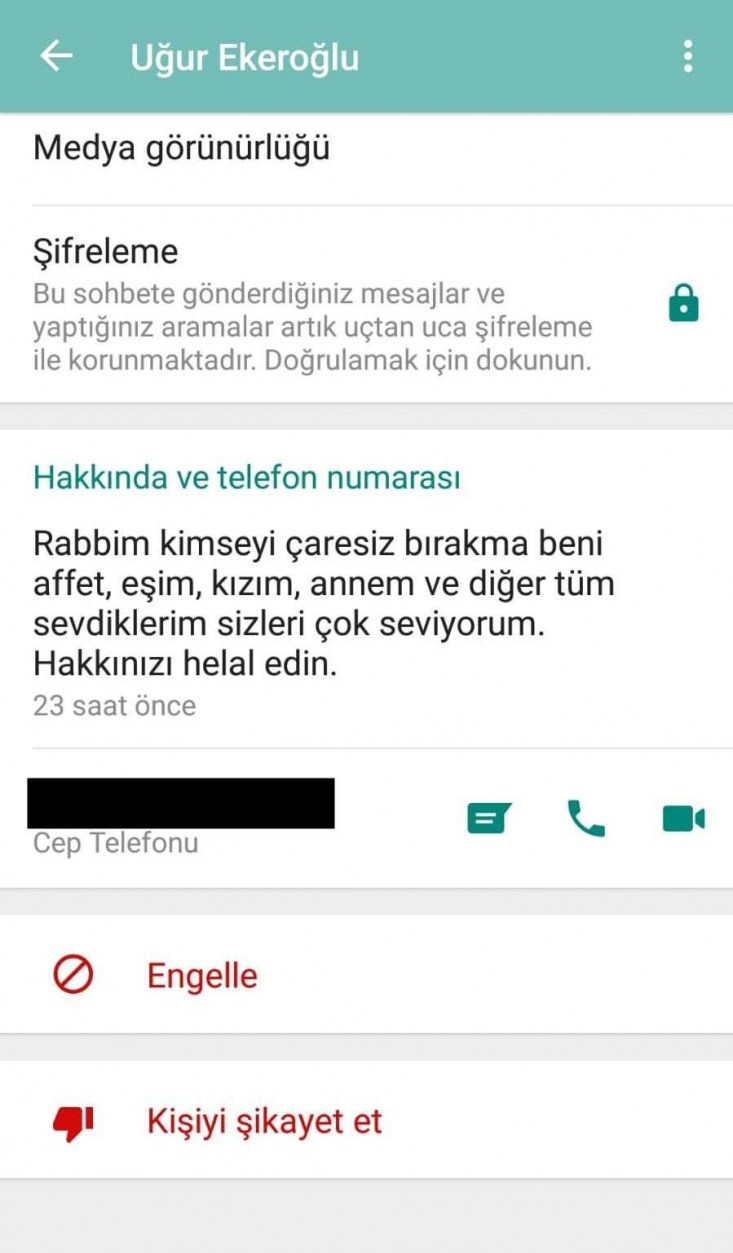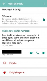 telefonunun WhatsApp durumuna "Rabbim kimseyi çaresiz bırakma beni affet.