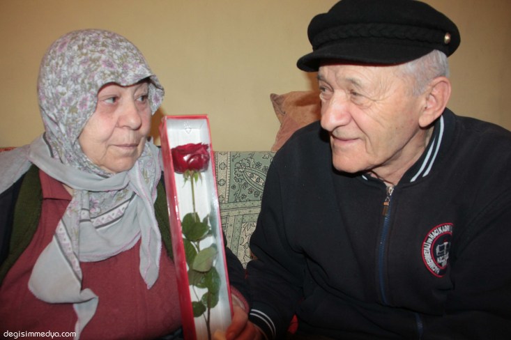 80'LİK DEDE 58 YILLIK AŞKINI SEVGİLİLER GÜNÜNDE ALDIĞI ÇİÇEKLE MUTLU ETTİ