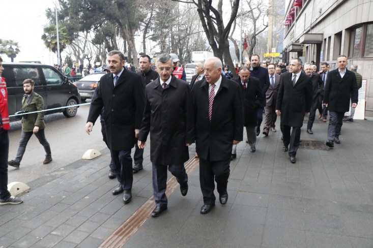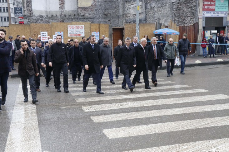 Turanlı, Zonguldak Belediye Başkanı Muharrem Akdemir, beraberindekiler yaya