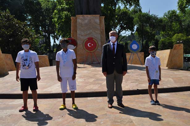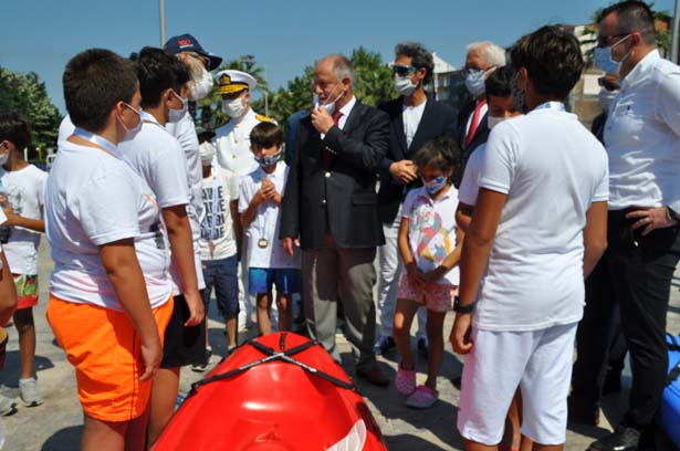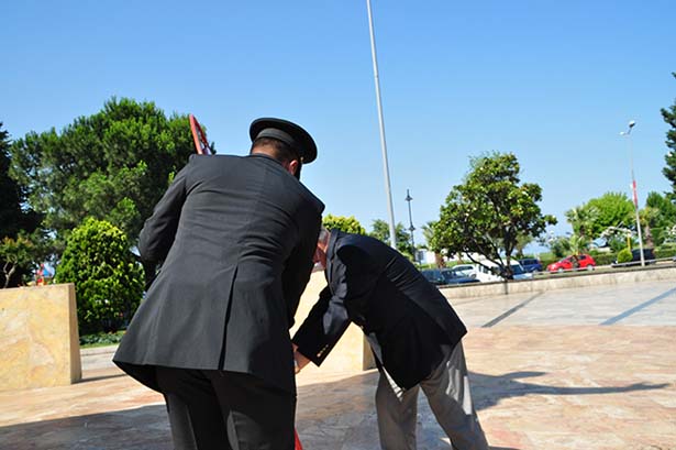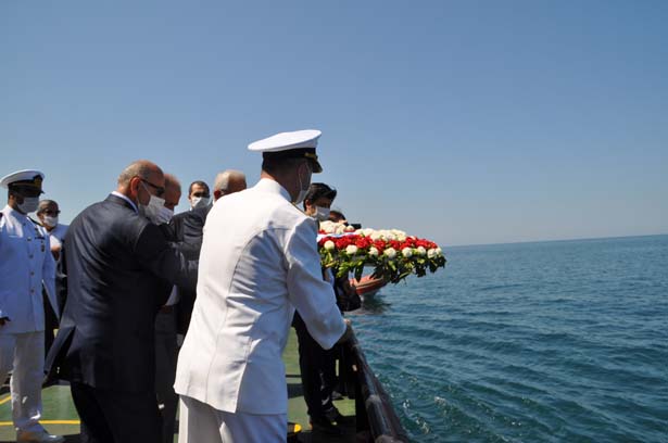 Törenin ardından, protokol heyeti deniz şehitleri anısına römorkör ile açılarak denize çelenk bıraktı.