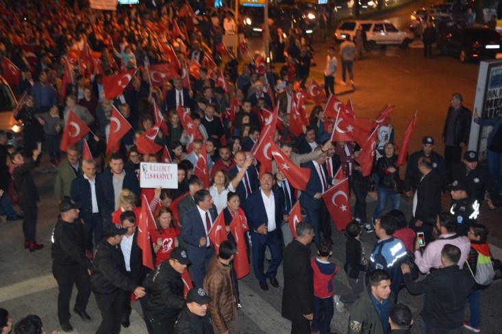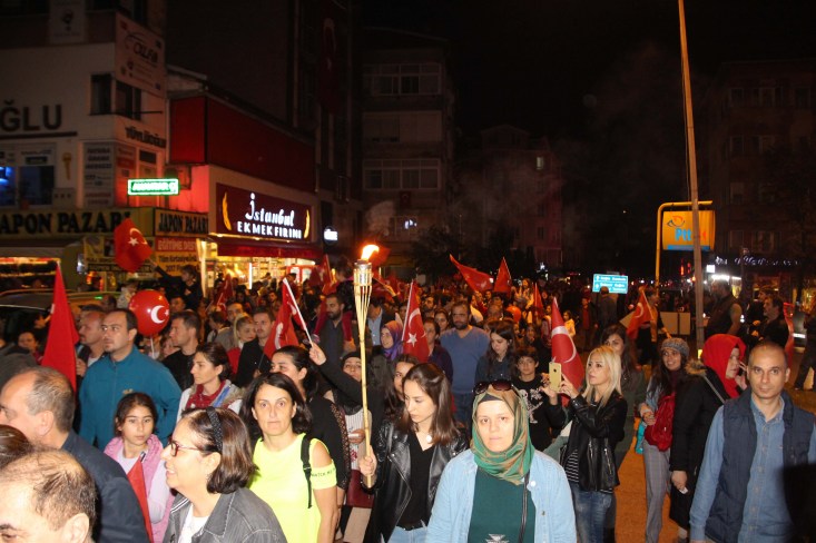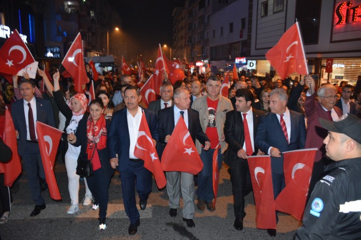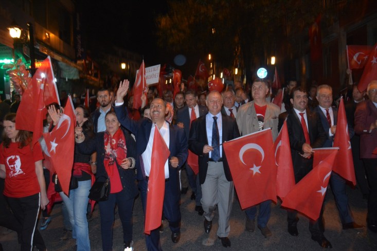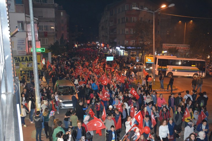başlayan fener alayı Atatürk Anıtı önünde sona erdi.
