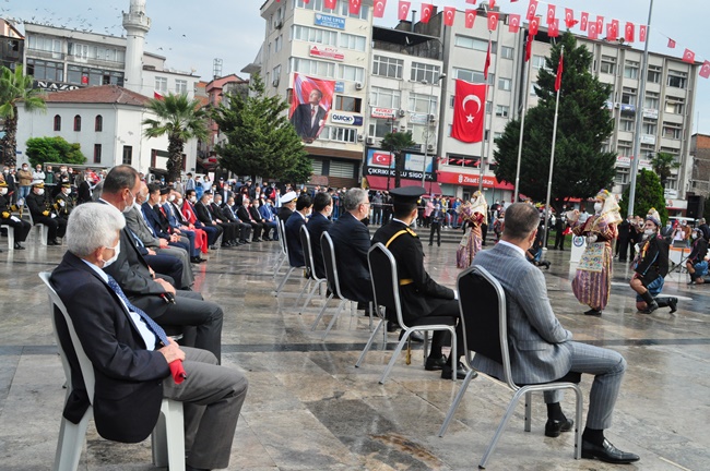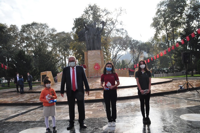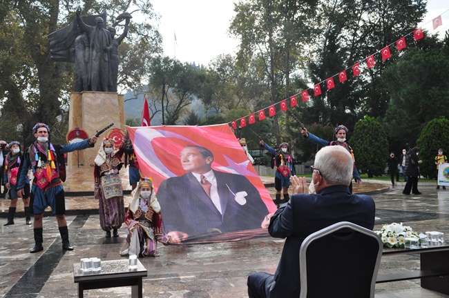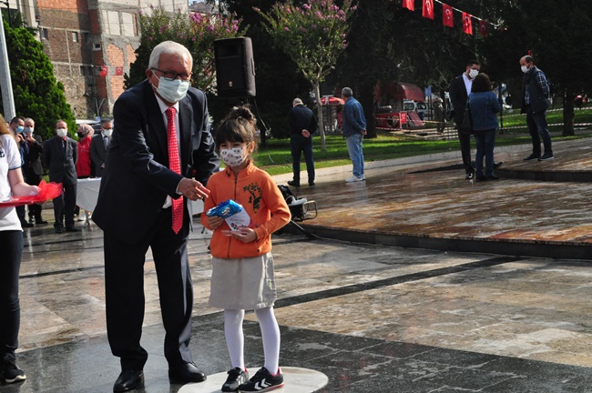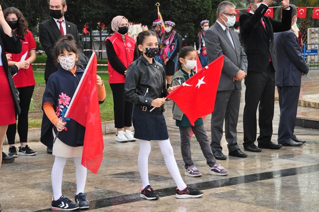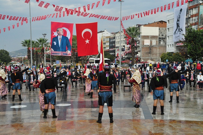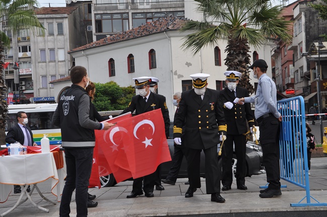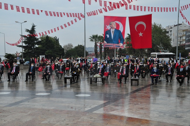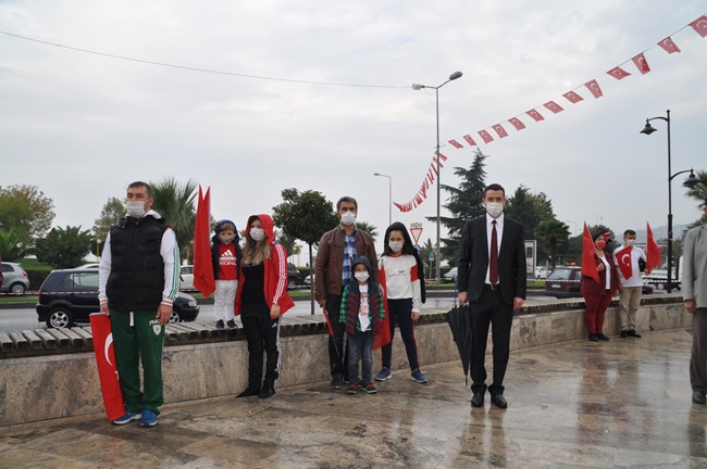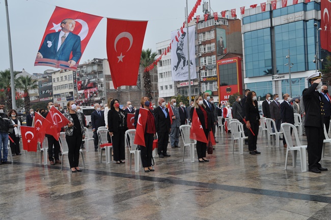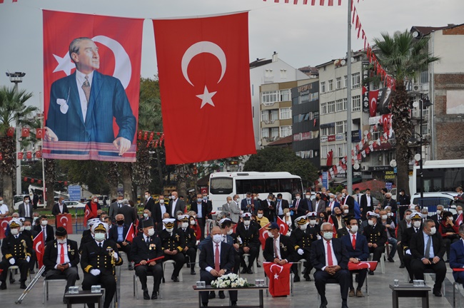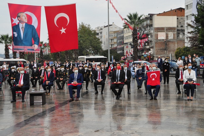 Kutlamalara daha sonra Atatürk Anıtı önündeki devam edildi. Tören alanına gelen davetlilere Karadeniz Ereğli Belediyesi tarafından ateş ölçümü, dezenfektan ve maske temin edilerek, Türk Bayrakları dağıtıldı.