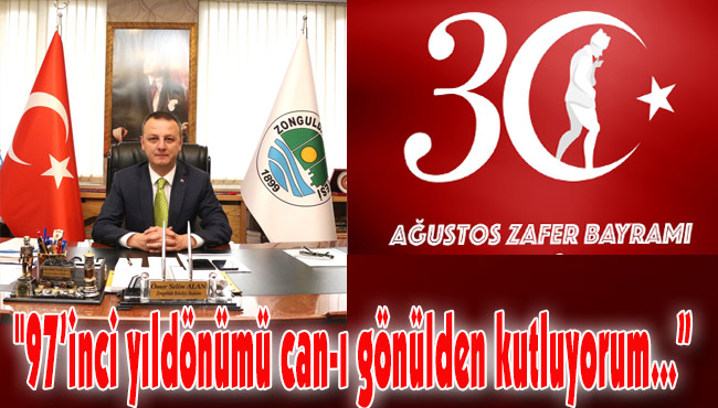 Zonguldak Belediye Başkanı Dr. Ömer Selim Alan, 30 Ağustos Zafer Bayramı nedeniyle, yazılı bir açıklama yaptı. Aziz Milletimizin istiklal ve istikbali uğruna verdiği destansı mücadele sonucunda, Gazi Mustafa Kemal Atatürk komutasında, 26 Ağustos’ta başlayıp, 30 Ağustos 1922’de zaferle sonuçlanan Başkomutanlık Meydan Muharebesi ile vatan topraklarımızın düşman işgalinden kurtulduğunu ifade eden Zonguldak Belediye Başkanı Dr. Ömer Selim Alan, yapmış olduğu yazılı açıklamasında şu görüşlerine yer verdi:
