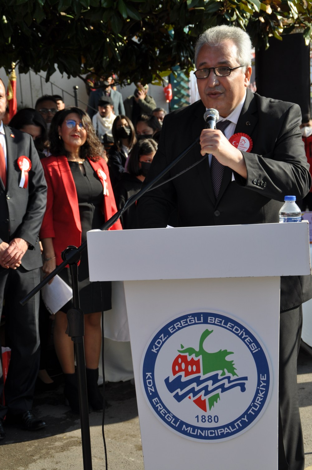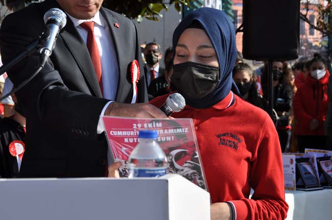 Saygı duruşu ve İstiklal Marşı’nın okunmasının ardından günün anlam ve önemine dair bir konuşma yapan Karadeniz Ereğli Kaymakamı Mehmet Yapıcı, Mustafa Kemal Atatürk’ün önderliğinde, Türk Milleti’nin yoktan var edildiğini vurgulayarak, Türkiye Cumhuriyeti’nin 98. Kuruluş yıl dönümünü kutlamanın gurur ve sevinci içinde olduğunu belirtti.