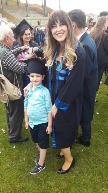 8 yıllık evli olduğunu ve 5 yaşında bir çocuğu olmasına rağmen içindeki eğitim aşkının dereceyle sonuçlandığını anlatan abla Ayten Kuyumcu ise "28 yaşındayım ve 8 senelik evliyim. Mutlu bir evliliğimden 5 yaşında bir çocuğum var. Okumak hep içimde bir aşktı ve bu aşkı öldürmedim. Bunu da zaten dereceye yansıttım. Eşimle üniversite sınavına hazırlanırken tanıştık. Ama bazı sebeplerden dolayı okuyamadım. Tabi şuan buraya gelmek kolay olmadı. Çok zorluklar çekerek bölüm ikincisi oldum. Her zaman destekçim eşim ve ailemdi. Kız kardeşimle beraber üniversiteye gitmeyi düşündük. Sınavları kazanıp aynı okula, aynı bölüme başladık. Kardeşimle beraber çok güzel 2 senemiz geçti, birbirinden güzel anılarımız oldu. Arkadaşsınız ama arkadaşlıktan öte kız kardeşimle aynı okulda okumak çok güzel bir duygu, herkese nasip olmaz. Bu yüzden birbirimizin dersleri kötü gitse, çalışmak istemese, birimiz diğerine destek olurdu. Kardeşim bana 'hadi sen yaparsın abla', ben kardeşime 'sen yaparsın' diye diye kardeşim okul birincisi, ben bölüm ikincisi oldum. Peş peşe başarı elde ettiğimiz zaman çok duygulandım, dayanamadım ağladım. Okumanın yaşı yok. 28 yaşındayım ve sınıfımdakilerden kat kat büyüktüm ve hepsi bana abla diyordu. Okulumuz küçük bir yerde olmasına rağmen öğretmenlerimizin bizlerin üzerinde çok emekleri var. Özellikle beni çok destekleyip, renklendirdiler. Oğlumla bile derslere gittiğim oldu ve hocalarımız beni çok anlayışlı karşıladı. Bende bu okuma aşkı bitmeyecek. İnşallah 4 yıllığa tamamlamayı düşünüyorum. Kardeşimin başarısı benim başarım, onu böyle görmek beni anlatılmaz şekilde mutlu etti. Çünkü çok emek verdi ve o her şeyin iyisini hak ediyor. Kardeşim hem okul hem de bölüm birincisi olduğu için inşallah daha iyi yerlere gelir. Tüm iyi dileklerim onunla. Ben eşime, aileme, kardeşime ve öğretmenlerime desteklerinden ötürü çok teşekkür ediyorum. Oğlumla beraber böyle bir başarıyı tatmak çok eşsizdi ve bizde çok güzel bir anı olarak kalacak" ifadelerine yer verdi.