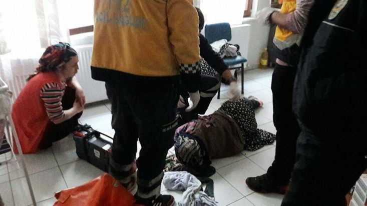 Yerden kalkamadığı için 4 gündür aç ve susuz kalan yaşlı kadının bitkin düştüğü öğrenildi. Yaşlı kadının hastanedeki tedavisi sürüyor.