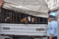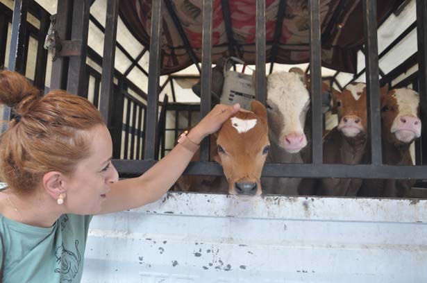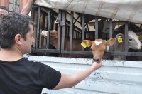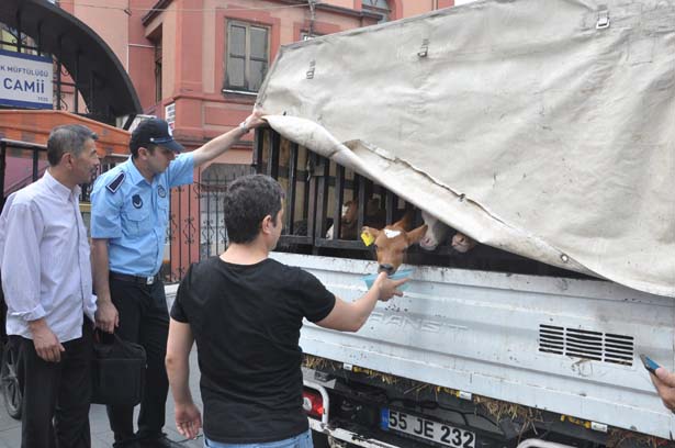 Samsun'dan Zonguldak'a satılmak için getirilen ve kamyonetin kasasında aç ve susuz bırakılan buzağılara esnaflar sahip çıktı.