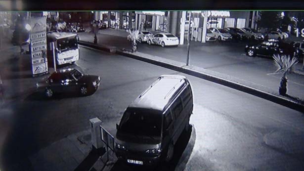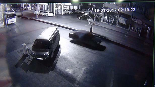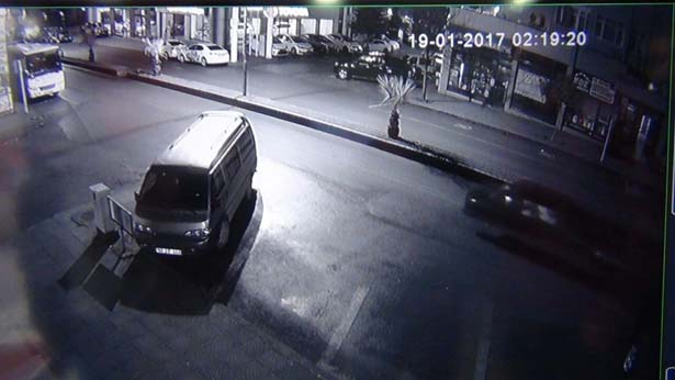 Diğer yandan, yaşanan oto hırsızlık anı, bir işyerine ait güvenlik kameralarınca kaydedildi. Görüntülerde, 02.20'de Müftü Mahallesi Uğur Mumcu Caddesi'ne giden iki hırsızdan birinin gözcülük, diğeri ise Meftun İş Hanı önündeki park halinde otomobile bindiği görülüyor. Geri geri hareket ettirdiği otomobili, trafiğin aktığı ters yöne metrelerce ilerleten şahıs, çalıştıramayacağını anlayınca Erdemir İş Hanı'na yakın bir noktada yol ortasına bırakıyor. Otomobilden inen şahıs, gözcülük yapan diğer şahıs ile birlikte, sakin hareketlerle olay yerinden uzaklaşıyor.