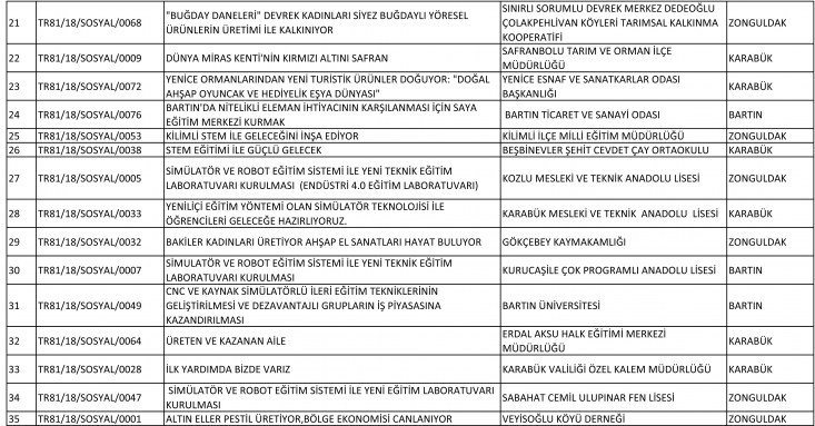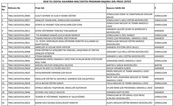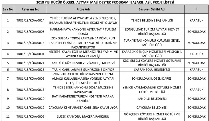 Batı Karadeniz Kalkınma Ajansı (BAKKA) 2018 Yılı Küçük Ölçekli Altyapı ve Sosyal Kalkınma Mali Destek Programları kapsamında destek almaya hak kazanan projelerin listesi ilan edildi.