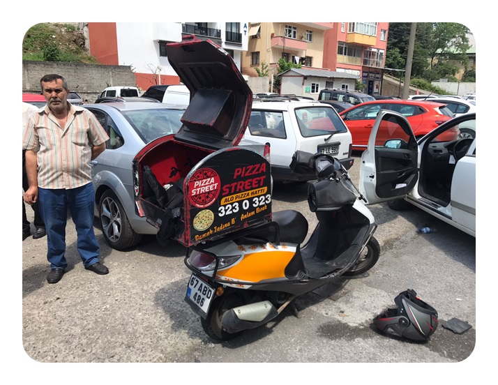 İddiaya göre, Ahmet A.’nın idaresindeki 67 ABB 243 plakalı otomobil ile Cengiz K. idaresindeki 67 ABD 486 plakalı motosiklet çarpıştı. Kazayı gören çevredeki vatandaşlar yaralı motosiklet sürücüsü için 112 sağlık ekiplerine haber verdi. Kısa sürede olay yerine ulaşan 112 sağlık ekipleri Cengiz K.’ya yaptığı ilk müdahalenin ardından ambulansa alarak özel hastaneye kaldırdı. Polisin kazayla ilgili soruşturma başlattığı öğrenildi.