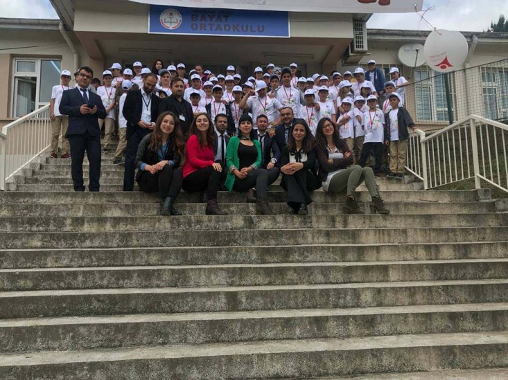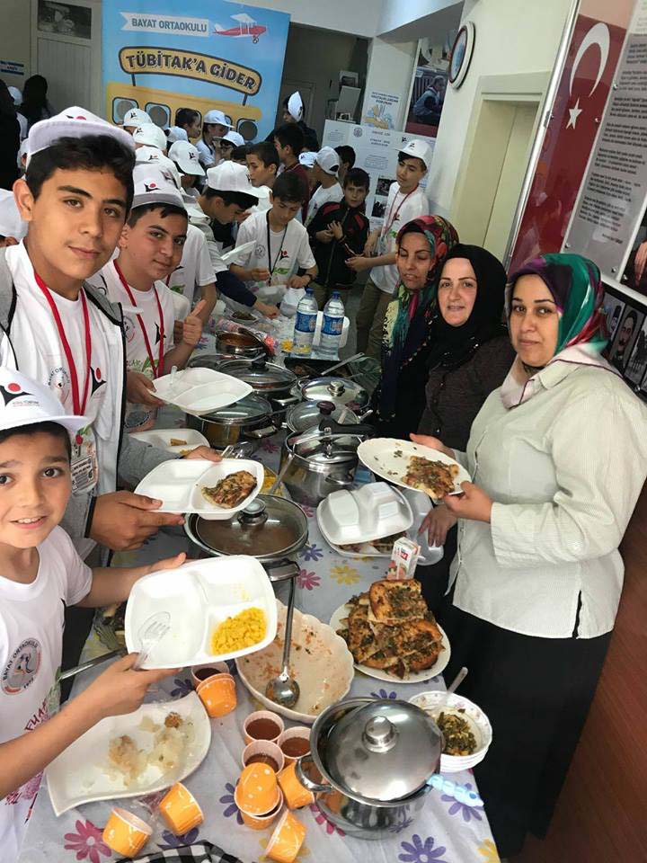 Karadeniz Ereğli Bayat Ortaokulu'nda Çok Amaçlı Salonu Açılışı ve TÜBİTAK 4006 Bilim Fuarı açılışı dolayısıyla tören düzenlendi. Açılışta, yufka açan, börek, pide ve çeşitli köy yemeklerini okulda hazırlayan öğrencilerin anneleri de açılışa ayrı bir renk kattı.