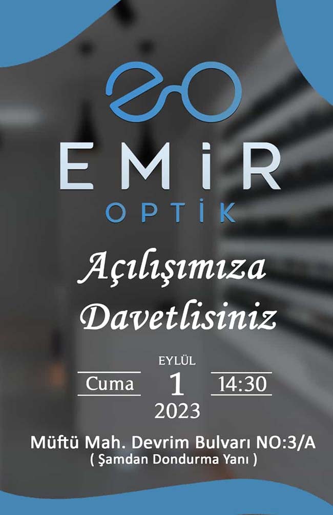 Çok çeşitli ürün yelpazesiyle hizmet vermeye başlayacak olan Emir Optik için 1 Eylül Cuma günü saat 14.30’da düzenlenecek olan açılış töreni düzenlenecek. Çarşı merkezde Müftü Mahallesi Devrim Bulvarı Şamdan Dondurma yanında gerçekleştirilecek açılışa tüm Ereğli halkı davetli.