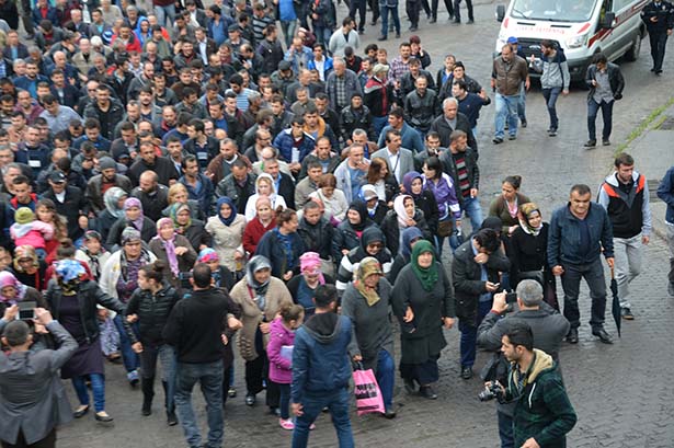 açlık grevi eylemine destek vermek amacıyla madenci yakınları Kilimli kent
