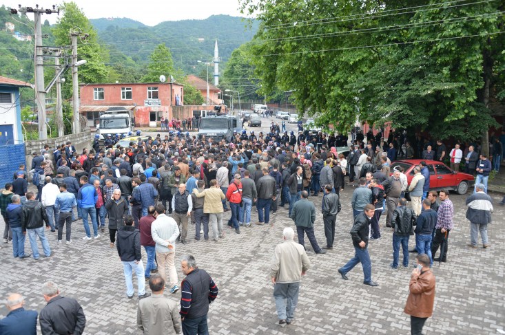 meydanında toplanarak ocağa doğru yürüdü. Sloganlar atarak ocağa yürüyen grubun