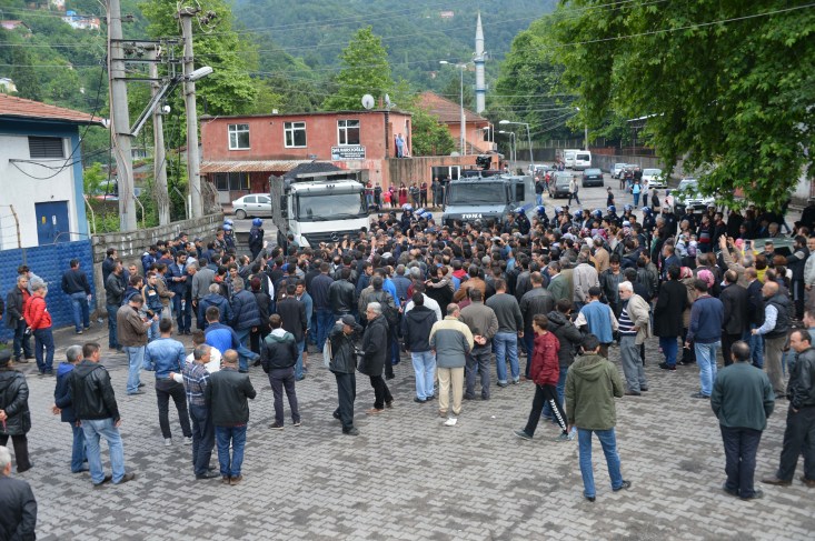önü Bölüm Mahallesi girişinde TOMA ve Çevik Kuvvet tarafından kesildi. Madenci