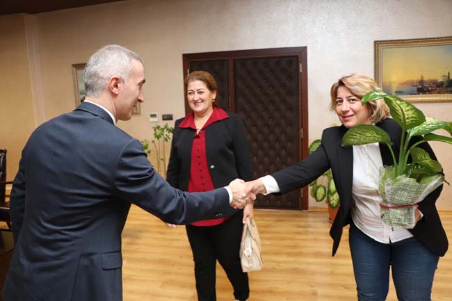Akçakoca MHP Kadın Kolları Başkanı Nursen Yanmaz, Düzce Cumhuriyet Başsavcısı Sedat Çelik'i makamında ziyaret etti.