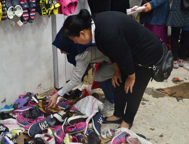 Sağlam olan bir tek raflarda olan terlikler kaldı. Alt tarafta kalan
