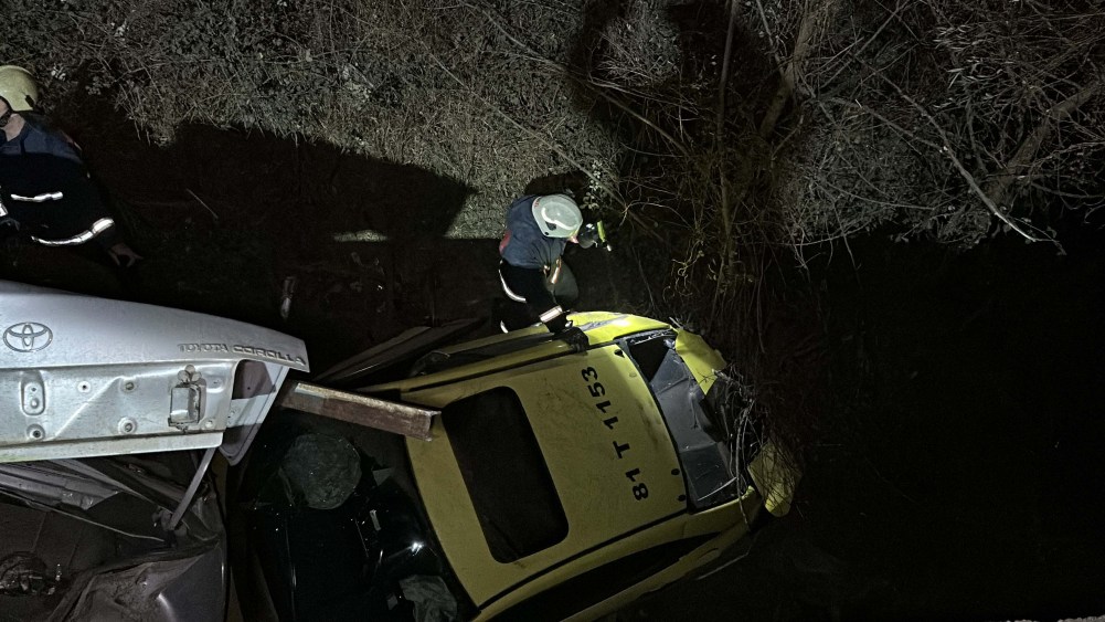 Düzce’de makaslayarak sollamaya çıkan alkollü taksici önündeki araç ile birlikte köprüden uçtu. Kazada 2’si ağır 5 kişi yaralandı.