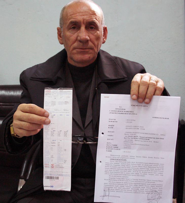 Zonguldak’ta ikamet eden Türkiye Taşkömürü Kurumu(TTK) Gümrük Uzmanı Ali Zenbil(49), elektrik faturasındaki 26 liralık fazlalığa karşı başlattığı hukuk mücadelesini kazandı. Elektrik faturalarının ‘kayıp kaçak bedeli’ nedeniyle kabarık geldiği yönündeki haberlerden etkilenen Zenbil, kendi faturasındaki 26 TL'lik fazlalıktan şüphelenerek 2 Nisan 2012 tarihinde Bilim, Sanayi ve Teknoloji İl Müdürlüğü Tüketici Sorunları Hakem Heyeti Başkanlığı’na dilekçe ile başvurdu. Ali Zenbil’in talebini haklı bulan Tüketici Hakem Heyeti, Enerjisa Başkent Elektrik A.Ş’nin kayıp kaçak bedelini geri ödemesine hükmetti. Söz konusu firma ise kararın iptali için Ali Zenbil hakkında Zonguldak 1. Asliye Hukuk Mahkemesi’nde dava açtı. Şirketin talebini reddeden Mahkeme, haksız yere tahsil edilen 26 liranın Zenbil’e iadesini yineleyerek, kesin kararını verdi. MAHKEMEDEN GEREKÇELİ KARAR: SEBEPSİZ ZENGİNLEŞME Kesinleşmiş gerekçeli kararında ‘hakkaniyete aykırılık ve sebepsiz zenginleşme’ tabirlerine vurgu yapan Mahkeme heyeti, şu tespitte bulundu: “Kaçak kullanım bedelinin abone olunmaksızın kullanılan enerji bedeli olduğu, Elektrik Piyasası Müşteri Hizmetleri Yönetmeliği’nde kaçak elektrik bedelinin tanımlanarak kaçak elektrik bedelinin kaçak kullananlardan nasıl tahsil edileceğinin düzenlendiği belirlenmiştir. Kaçak elektrik kullanımını önleme görevinin davacı şirketin görevleri arasında olup davacı şirketin önleyemediği kaçak enerji kullanım bedelini abonelerine yansıtmasının hakkaniyete aykırı olduğu gibi, kaçak enerji kullandığı tespit edilenlerden yönetmelik uyarınca tahsil edilecek kaçak enerji bedelinin, davacı şirketin mükerrer tahsilat yoluyla ‘sebepsiz zenginleşmesine’ neden olacağı anlaşılmakla davanın reddine karar verilmesi gerektiği kanaatine varılmıştır.” Konuyla ilgili bilgi veren Ali Zenbil, “Kayıp kaçak elektrik bedeliyle ilgili haberlerden sonra elektrik faturam 26 liralık fazladan gelince Tüketici Hakları’na başvurdum. Talebim kabul gördü ve geriye dönük kayıp kaçak bedelinin ödenmesini talep ettim. Kurum ise kararın iptali için benden davacı oldu. Mahkeme kesin kararını verdi ve ikinci davayı da kazandım. Şimdi işin hukuki yönünü araştıracağım. Fazladan ödediğim parayı geriye dönük ödenmesi için avukatımla yeniden dava açacağım. Daha önce faturanın üzerinde kayıp kaçak bedeli olarak görülen bölüm, olayın medyaya yansımasından sonra ‘dağıtım bedeli’ olarak değiştirilmiş. Ayrıca ‘personel satış hizmet bedeli’, ‘personel sayış okuma bedeli’ ile ‘iletişim ve kullanma bedeli’ gibi kalemler faturaya yansıtılıyor. İşte yasal olmayanlar bunlar. Örneğin benim şu anki faturama normalde 58 lira 60 kuruş ödemem gerekirken, yasal olan kalemlerle birlikte bu yasal olmayan tutarı da ilave ettiğimiz zaman faturanın toplam tutarı 92 liraya yükseliyor. Bu haksız kazanca 'dur' demek için mücadelemi sürdüreceğim” dedi. Türkiye’de vatandaşların sarf ettiği elektrik bedelinin yüzde 30’unun özel kuruluş tarafından haksız kazanç olarak elde edildiğini ileri süren Zenbil, “Bu oranın bütün ülke geneline yayıldığında ortaya çıkacak meblağı düşünebiliyor musunuz? Yani Enerjisa, asgari ücretle çalıştırdığı personelinin fatura kesim ücretini bile benden alıyor. Böyle bir anlayış olabilir mi? Anayasada bile böyle bir uygulama yok. Kayıp kaçak bedeli altında her aboneden 20 -30 TL gibi rakamlarla katrilyonlarla beraber zenginleşiyorlar. Bu zenginleşme de yasal olmayan zenginleşmedir. Zaten mahkeme de gerekçeli kararında bunu vurgulamıştır.” şeklinde konuştu. ‘BEN HAKKIMI ARIYORUM, VATANDAŞLAR DA HAKKINI ARASIN’ Vatandaşlara çağrıda bulunan Zenbil, “Herkesin hakkını aramasını ve bu konuda tüketici mahkemesine başvurmasını istiyorum. Ben ilk hukuk zaferini kazandım, bundan sonra inşallah ödemiş olduğum fatura bedellerini de kendilerinden alacağım. Vatandaşların da bu yolu takip etmesi gerekiyor.” TÜKETİCİ HAKLARI DERNEĞİ’NDEN VATANDAŞA ÇAĞRI Bu arada banka kartları ve kayıp kaçak bedeli konusunda vatandaşlara çağrıda bulunan Zonguldak Tüketici Hakları Derneği Başkanı Ali Topaloğlu ise yasal süreçle ilgili şu bilgiyi verdi: “Mahkememiz kaçak kullanım, dağıtım, personel hizmet, sayaç okuma ve iletişim bedeli olmak üzere 5 kalem hizmetten alınan ücretin haksız olduğuna karar vermiştir. Buna rağmen söz konusu şirket, hakem heyeti kararlarına itiraz edip tüketici mahkemelerinde dava açmaktadır. Fakat açılan itiraz davaları reddedilmiştir. 2011 yılına kadar kayıp kaçak bedeli olarak yansıtılan bedel ortaya çıkınca firma tarafından başka bir isimle alınmaktadır. Bu noktada biz bütün tüketicilerimizden haklarını aramalarını istiyoruz. Gerek bankalar gerekse elektrik konusunda tüketicilerimiz maalesef çok yavaş davranıyor. Herkes kendi adına dava açarak hakkını aramalıdır. Bu konuda bütün tüketicileri duyarlı olmaya çağırıyoruz.”