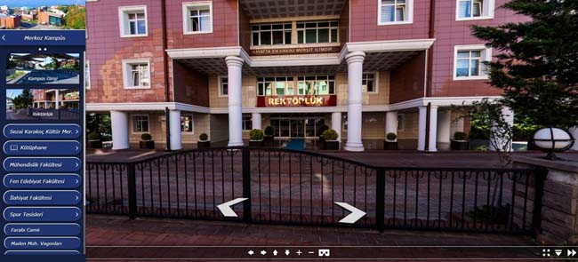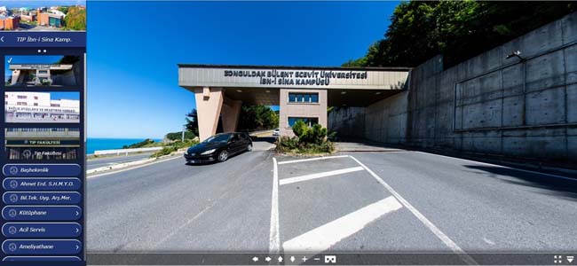 Google arabası ile kampüslerimizdeki tüm birimlerin adım adım gezilmesiyle oluşturulan sanal tur içerik, mesafe ve zaman problemini ortadan kaldırarak, web kullanıcılarına tek tuşla üniversiteyi izleme imkanı sunuyor. Bu kapsamda isteyen herkes, web ana sayfamız üzerinden üniversitemizin binalarını ve iç mekanlarını, kütüphaneleri, tıp fakültesi hastanesini, ameliyathaneleri, laboratuvarları, amfileri, spor tesisleri ve hatta Çaycuma kampüsünde bulunan uçak kabin simülatörü anında gezebiliyor.