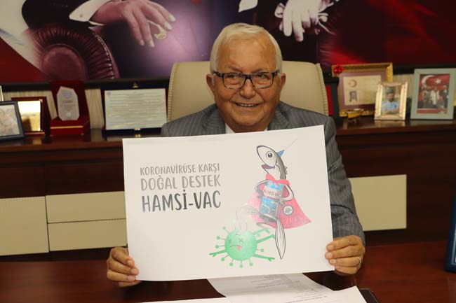 Hamsi çok yararlı bir besin maddesi. Doğal bir besin gıdası olan balık çeşidi. Hamsinin Koronavirüse karşı da doğal bir lezzet olduğunu düşünüyoruz. Ondan ötürü de adına HAMSİVAC adını koyduk. Hamsi aşısı olmuş gibi hamsiyi yediğinizde KOVİD-19’a karşı dirençli olacaksınız. O yüzden bütün herkesi Karadeniz Ereğli’ye davet ediyorum” dedi.