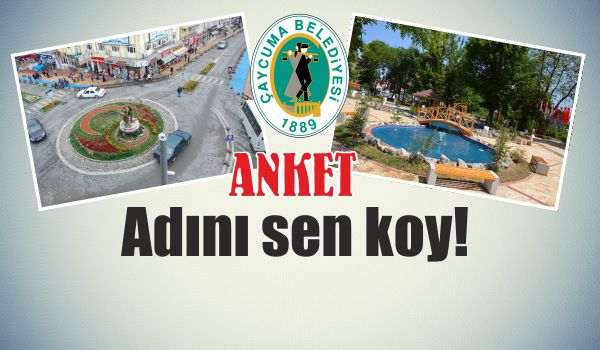 Çaycuma Belediyesi 17 adet kavşak, park ve bahçenin adını anketle belirliyor. Belediyenin www.caycuma.bel.tr adlı resmi internet sitesinde, Facebook entegreli olarak düzenlenen ankette, vatandaşlar, Facebook hesapları üzerinden istedikleri tesise, dilediği ismi önerebilecek.