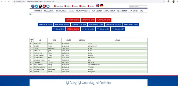 daha çağırıldı. Bunların sonunda Altınordu Futbol okulunun internet sitesinde