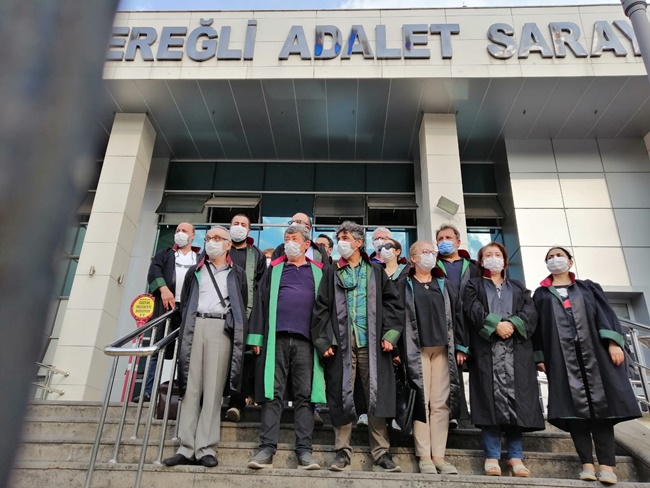 Zonguldak’ın Ereğli ilçesinde, iktidarın Çoklu Baro yönündeki yasa değişikliği istemine karşı olan avukatlar, oturma eylemi gerçekleştirdiler.