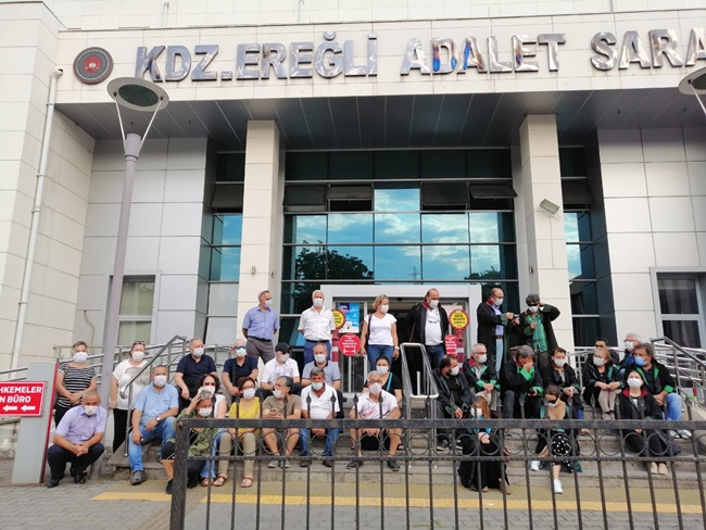Avukatların eylemine CHP İlçe Yönetim Kurulu üyeleri, bir grup CHP’li ile ADD Ereğli Şube üyeleri katılarak destek verdiler.