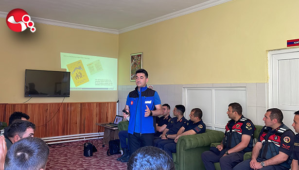 Zonguldak İl Jandarma Komutanlığı ile koordineli olarak ilçe jandarma komutanlığındaki görevli personele afet öncesinde ve sonrasında yapılması gerekenler, afet ve acil durum çantası hazırlama ve deprem sonrası yapılması gerekenler anlatıldı.