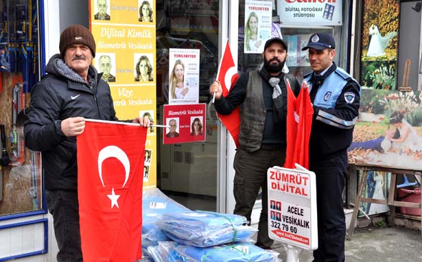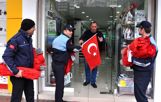Karadeniz Ereğli Belediyesi Zabıta Müdürlüğü, Türk Ordusunun Afrin Operasyonuna destek olmak için ilçedeki esnaflara Türk Bayrağı dağıttı.