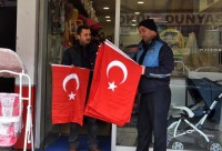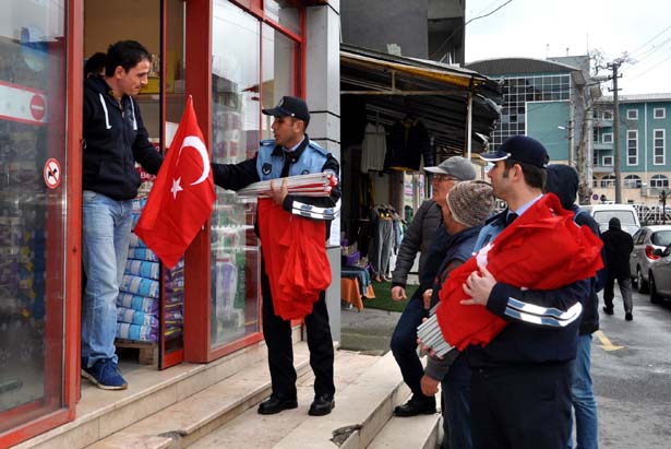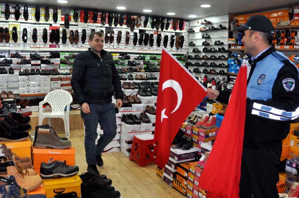Belediye Zabıta Müdürlüğü, ilçedeki esnaflara dükkanlarına dağıtmaları için 2 bin adet Türk Bayrağı dağıtarak Mehmetçiğe destek oldu.