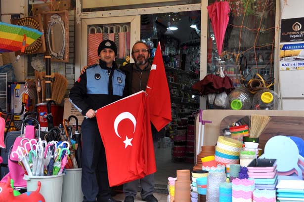 Dursun, Afrin operasyonuna destek amaçlı olarak ilçe esnafına 2 bin adet Türk Bayrağı dağıttıklarını söyledi.