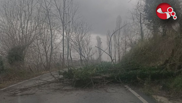 Zonguldak’ın Alaplı ilçesinde şiddetli fırtına sebebi ile yıkılan ağaç yolu trafiğe kapattı.