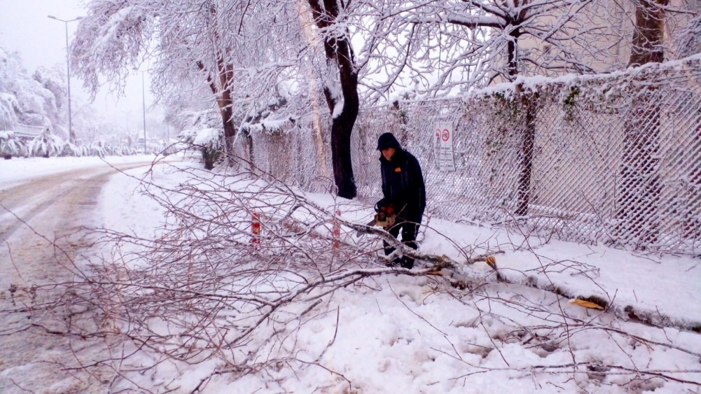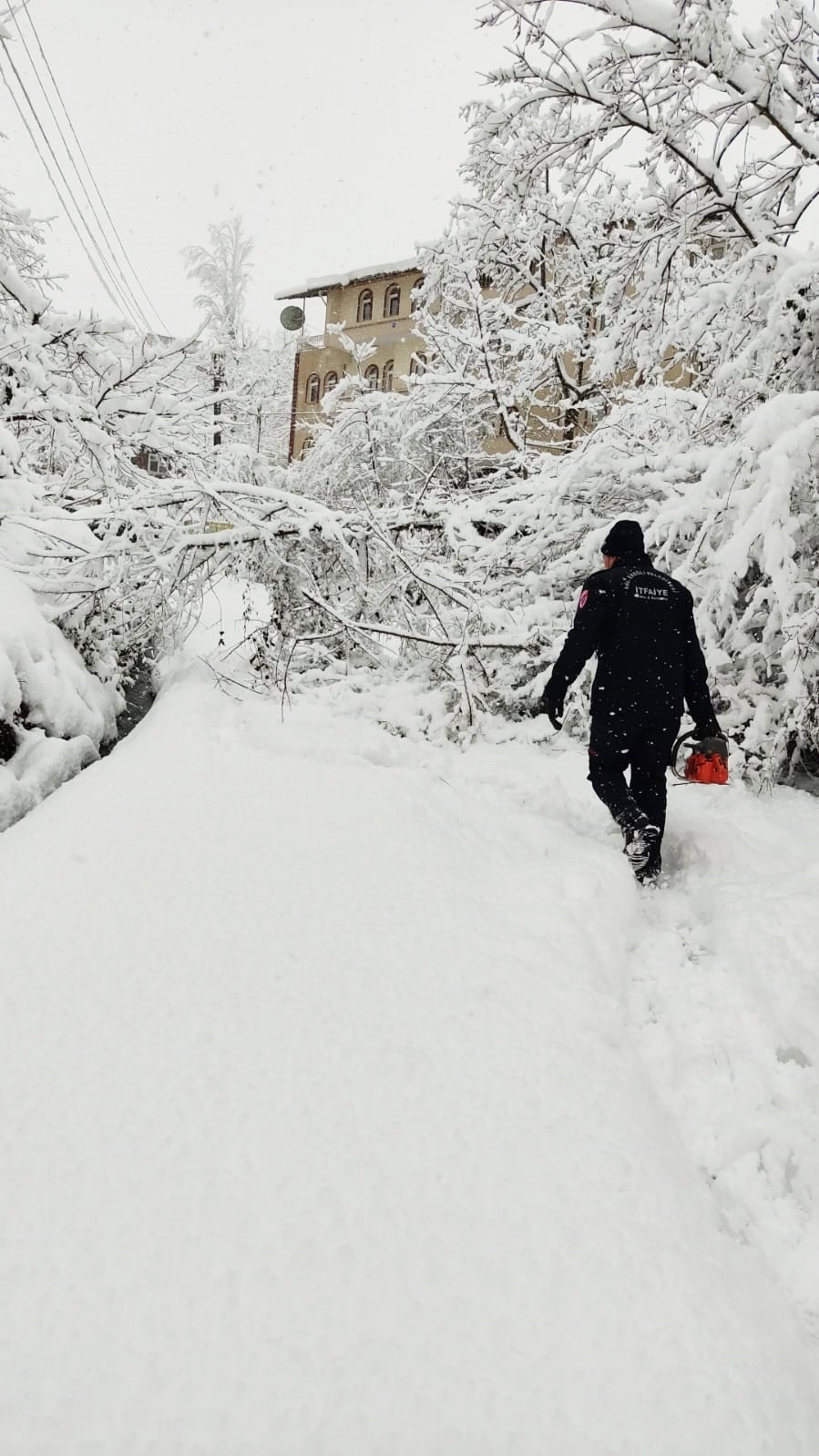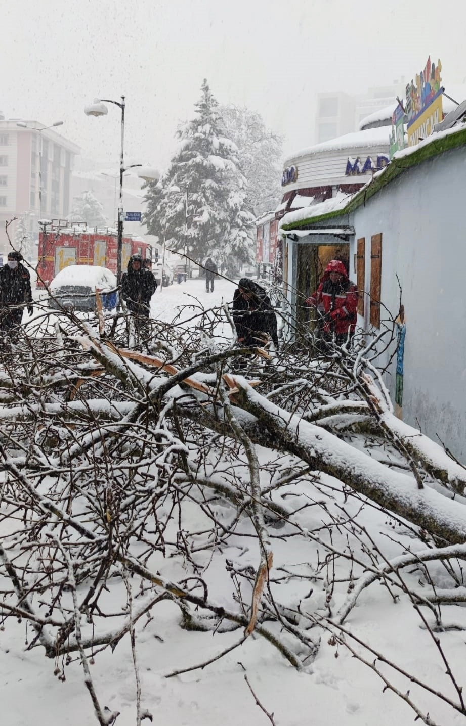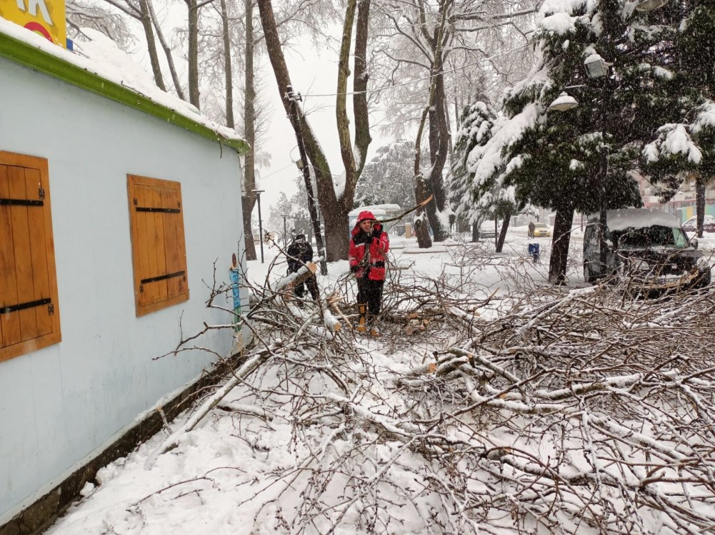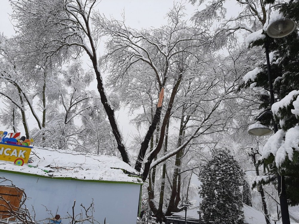 Kdz. Ereğli’de etkili olan kar yağışı sonrası bir çok ağaç devrildi, dallar kırıldı. İtfaiye ekipleri ağaç temizliği yapıyor.