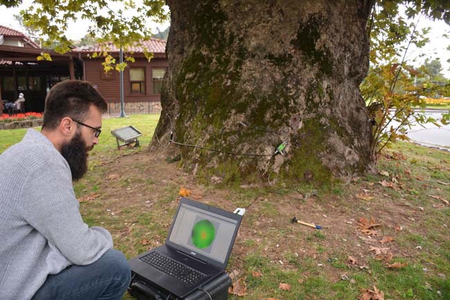 “Ereğlimizde tarihi çınar ağaçları ve bunun yanında çınar ağaçlarının yayılma alanında bir çok tür ağaç bulunuyor. Bu ağaçların çoğunluğu insanların sıklıkla bulunduğu, oturduğu, gölgelendiği şehir içinde bulunuyor. Tabii ki zaman geçtikçe, yaşlandıkça ve çevresel şartlardan dolayı ağaçların sağlıkları bozulabiliyor. Durum tespiti yapmak için değişik yöntemler var. Biz modern teknolojiyi kullanarak bu çalışmamızda Akustik Tomografi yöntemini seçtik. Bu yöntem ile ağacın içine ses dalgaları gönderilerek bu ses dalgalarının geri dönüş hızının hesaplanmasıyla nerelerde kavuklaşma, nerelerde çürüme olduğu tespit ediliyor. Çalışmayı yapan arkadaşlar sonunda ağaçların sağlık durumlarıyla ilgili verilerini, risk analizlerini rapor halinde sunacaklar. Rapora istinaden Anıt ağaç statüsünde olan çınar ağaçlarımıza müdahale etmek için Zonguldak İl Çevre ve Şehircilik Müdürlüğü’nden izin alacağız. Anıt ağaç statüsünde rapor olmayan ağaçlarımızda biz belediye olarak bakım işlemlerini yapacağız.”