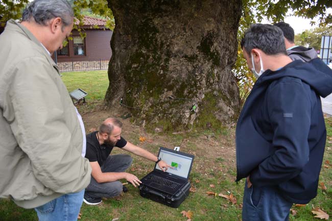 Kdz. Ereğli Belediyesi kent genelindeki Anıt ağaç ve diğer araç türlerinin Akustik Tomografi yöntemiyle sağlıklarını kontrol ediyor.