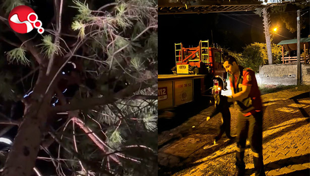 Zonguldak'ta ağaçta mahsur kalan kedi, itfaiye ekiplerince kurtarıldı.